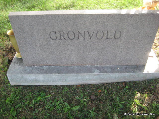 Inscription: "Beloved Mother and Grandmother" - Research Note: The lot owner was Floyd V. Stewart. Daughter of Frank Campbell and Amelia Huber. Mrs. Floyd Stewart of Monett, MO was the informant on the death certificate. Daughter Delores Stewart's obit names her parents as the daughter of Bernt Olaf and Rochelle Zingara (Campbell) Gronvold. Delores is buried at Oakdale Cemetery. Bernt Olaf died in 1938 in Ward Co., ND and is buried at Holden Lutheran Cemetery, Kenyon, Goodhue Co., MN. - Another Photo | Monett Cemetery Records Death Certificate Census Phyllis Long Monett Historical Society Photo |