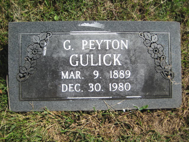 | GULICK, George Peyton | Mar. 9, 1889 | Dec. 30, 1980 | Research Note: Buried next to his second wife Lillie C. Gulick. Son of James Henry Gulick and Lillie Caroline Moffett. Peyton Gulick first married Nancy Olive Armstrong on Dec. 28, 1913 in Barry Co., MO. Divorced in the 1920 census. | Monett Cemetery Records Census MO Marriage Records Phyllis Long Monett Historical Society Photo |