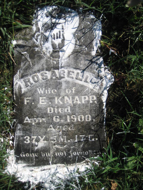 | KNAPP, Rosabelle | Abt. 1863 | Apr. 6, 1900 | Inscription: "Wife of F. E. Knapp - Aged 37Y 5M 17D" - Research Note: Wife of Floyd E. Knapp. | Note Phyllis Long Monett Historical Society Photo |