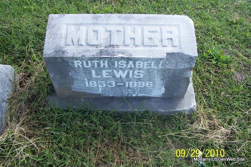 | LEWIS, Ruth Isabell | 1853 | 1896 | Inscription: "Mother" - Research Note: Buried next to J. W. Lewis. - Another Photo - Plot Stone Photo | Monett Historical Society Photo |
