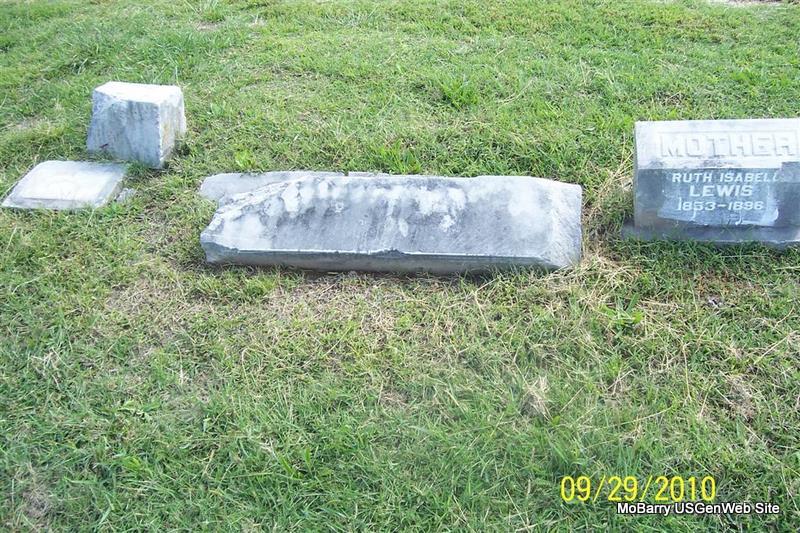 | LEWIS, J. W. | No Date | No Date | Research Note: J. W. is buried next to Ruth Isabell Lewis. His stone may be broken and on the ground. See the photos for Ruth. | Monett Cemetery Records Phyllis Long |