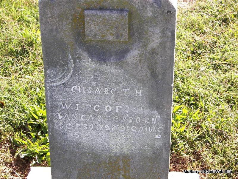 Inscription: "Wife of Joseph Lancaster" - Research Note: Very old stone and hard to read. She is listed with the City of Monett with no dates and having no stone which is incorrect. - Notes from Elaine Zukowski, gg granddaughter: Daughter of Oliver Emerson and Mary Hale. She first married David Robbins who died in 1873 in Cuming Co., NE and had eight children. They moved to a farm near Omaha, NE. On Dec. 13, 1882 she married Sidney Burton Messenger in Omaha, NE, and they divorced. She then married Joseph Lancaster on Nov. 13, 1884 in Elk Co., KS. Joseph married again to Emaranda Scott on Jan. 26, 1890 in Lawrence Co., MO. Elizabeth and Joseph are in the 1885 Wilson Co., KS state census. Therefore, she died between 1885 and 1890. | Family History Elaine Zukowski Monett Cemetery Records Phyllis Long Monett Historical Society Photo |