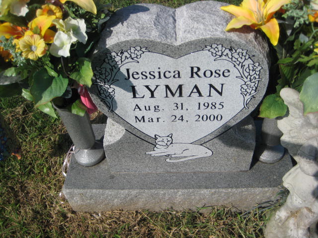 Inscription: "Walk softly, a dream lies here." - Research Note: Jessica Rose Calhoun, 14, of Monett, died at Cox Monett Hospital following a sudden illness. She was a student at Monett Middle School where she was on the track team and a member of the middle school choir. She was a paper carrier for the past two years at The Monett Times. She was the daughter of Randy and Shannon Lyman. - Back of Stone | Monett Cemetery Records Monett Times Phyllis Long Monett Historical Society Photo |
