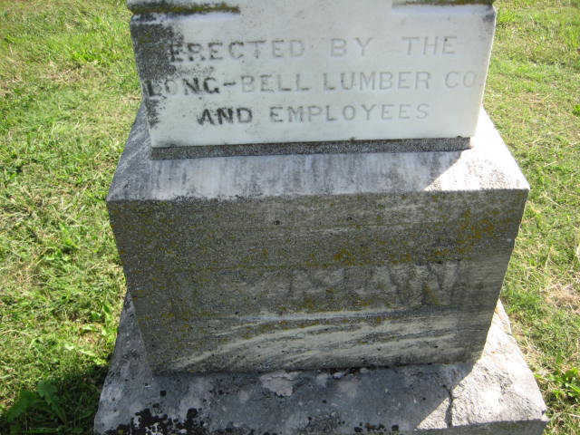 Inscription: "Erected by the Long-Bell Lumber Co. and Employees" - Research Note: Buried next to Arthur W. Lyman, his son. His wife was Sarah Nutter. Researchers say he was the son of Levi Lyman and Sarah Cornwall. - Tacoma Daily, Sept. 27, 1894 - The funeral of Levi P. Lyman and Arthur W. Lyman took place yesterday afternoon from their late residence. The remains will be shipped to Monett, MO for interment. - Another Photo - Another Photo | Monett Cemetery Records Tacoma, WA Death Records Tacoma Daily Census Phyllis Long Monett Historical Society Photo |