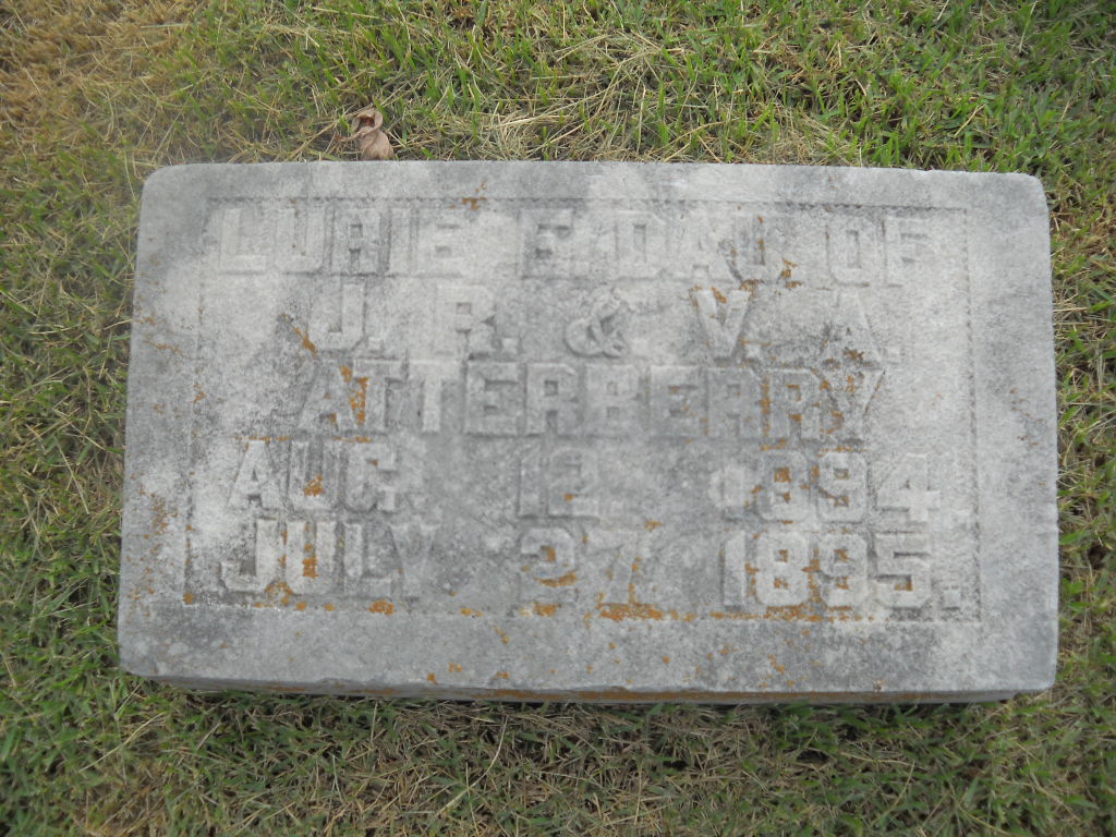 | ATTERBERRY, Lurie E. | Aug. 12, 1894 | July 27, 1895 | Inscription: "Dau. of J. R. and V. A." | Photo BCG and HS |