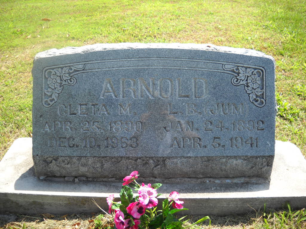SSW: Cleta M. - Research Note: According to his death certificate his wife was Cleta M. Arnold. He was a son of James Alfred Arnold and Louisa Katie Williams. His wife was the informant. The stone has 1892 as his year of birth. | Death Certificate Phyllis Long Photo BCG and HS |