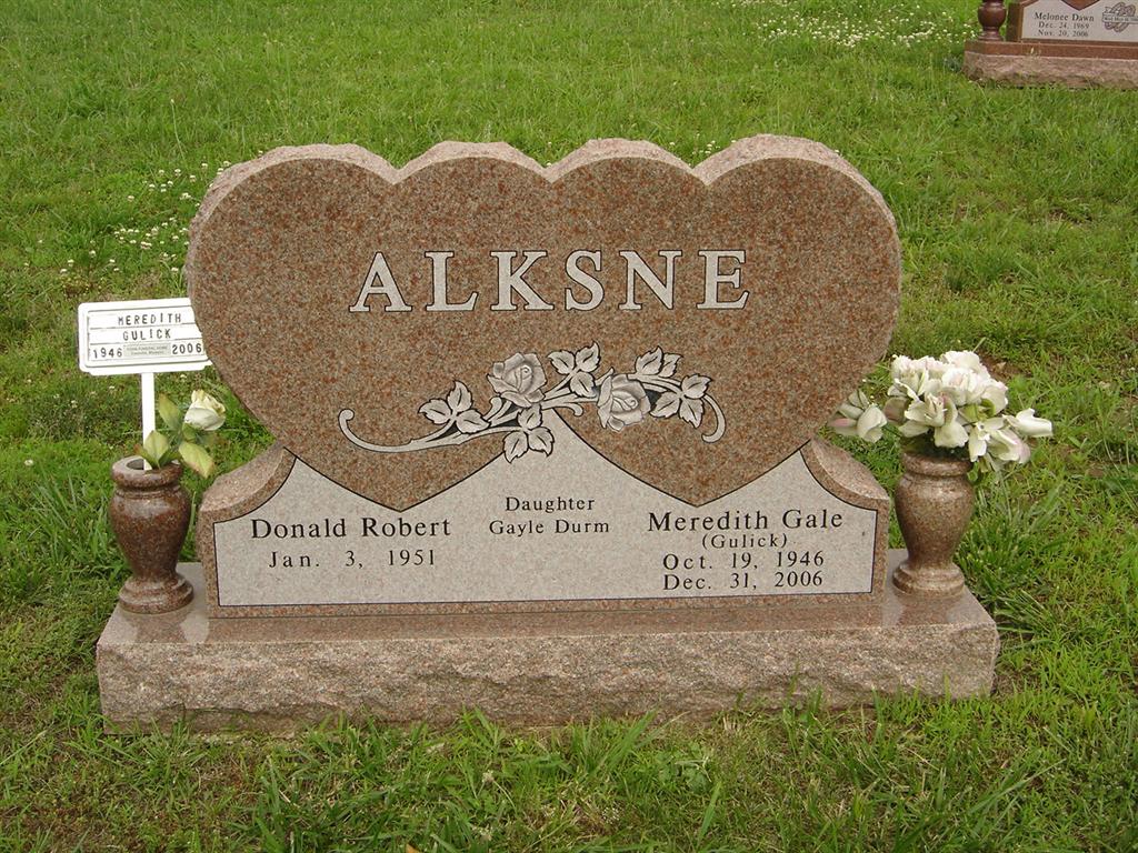 | ALKSNE, Donald Robert | Jan. 3, 1951 | No Date | SSW: Meredith Gale Gulick - Inscription: "Daughter Gayle Durm" | Photo BCG and HS |