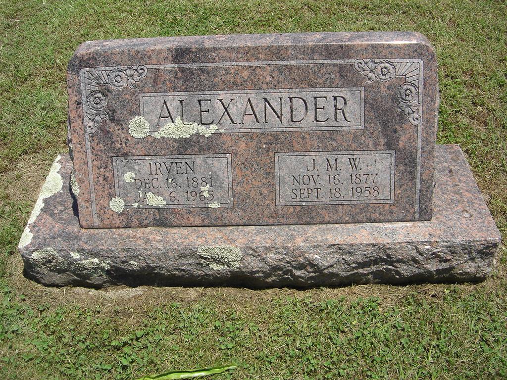 SSW: Irven - Research Note: His stone has that he was born in 1877 and the death certificate has his birth year as 1887. He was a Springfield, MO resident. His wife was Irven Alexander and he was the son of Alphonzo Alexander and Lavena Black. He was a retired farmer. Audley Alexander of Amarillo, TX was the informant. | Death Certificate Phyllis Long Photo BCG and HS |