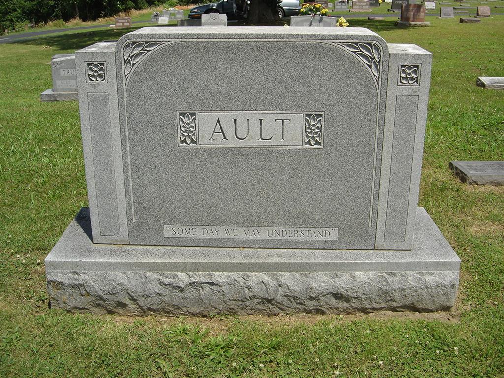 | AULT, Bertha C. (ARNHART) | Jan. 25, 1881 | Feb. 14, 1968 | Research Note: Her maiden name is given on James' death certificate. Daughter of George Alexander Arnhart and Sarah A. Roller. Wife of James Clinton Ault. James C. Ault, age 22, married Bertha Arnhart, age 20, on May 8, 1901 in Barry Co., MO. - April 17, 1909, Saturday, Cassville Democrat - Washburn Prairie News: Uncle George Arnhart is in very poor health at the home of his daughter Mrs. C. F. Jaynes. Malone Cox and wife and Joshua Arnhart of Purdy and J. C. Ault and family of Cassville were called to the bedside of their father Saturday. - Ault Plot Stone | Photo BCG and HS Note Donna Cooper Online Newspapers MO Marriage Records Census Phyllis Long |