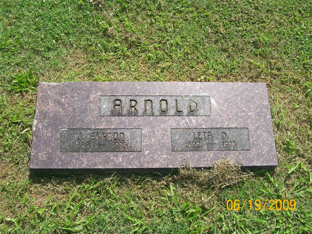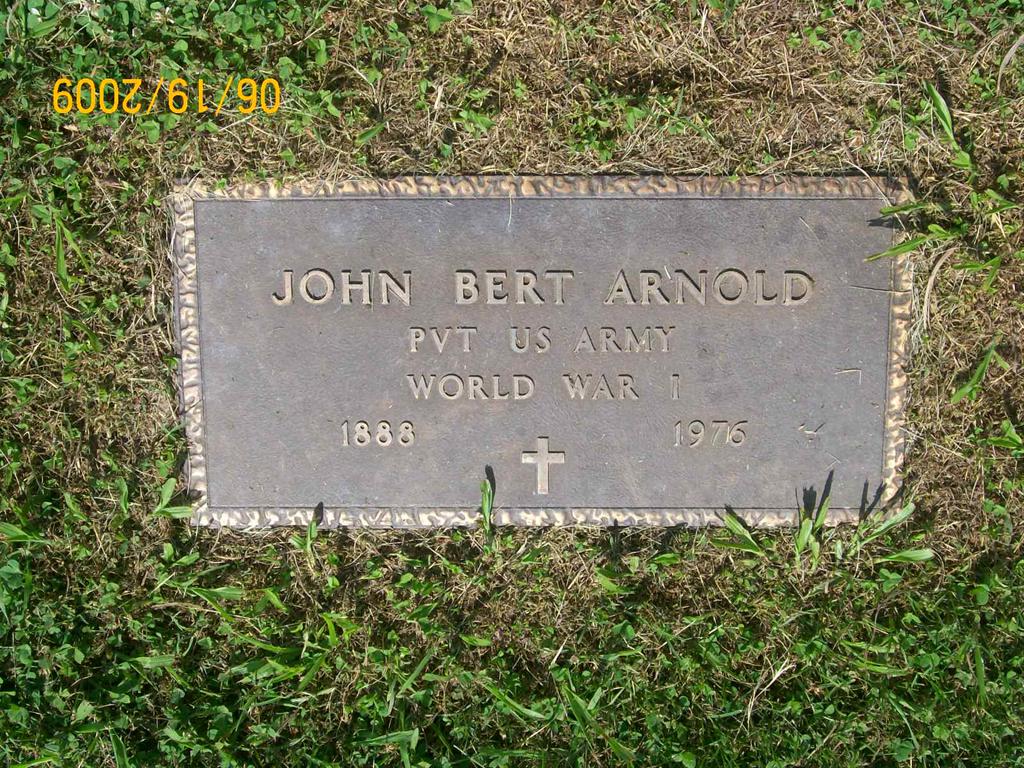 | ARNOLD, John Burton "Bert" | Oct. 20, 1888 | 1976 | SSW: Leta D. - Research Note: He was a son of James Alfred Arnold and Louisa Katie Williams. - Military Stone - Inscription: "PVT US ARMY WORLD WAR I" | Census Phyllis Long Photo BCG and HS |