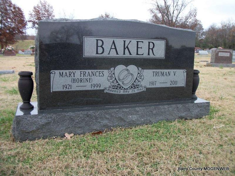 | BAKER, Mary Frances (HORINE) | May 6, 1921 Barry Co., MO |