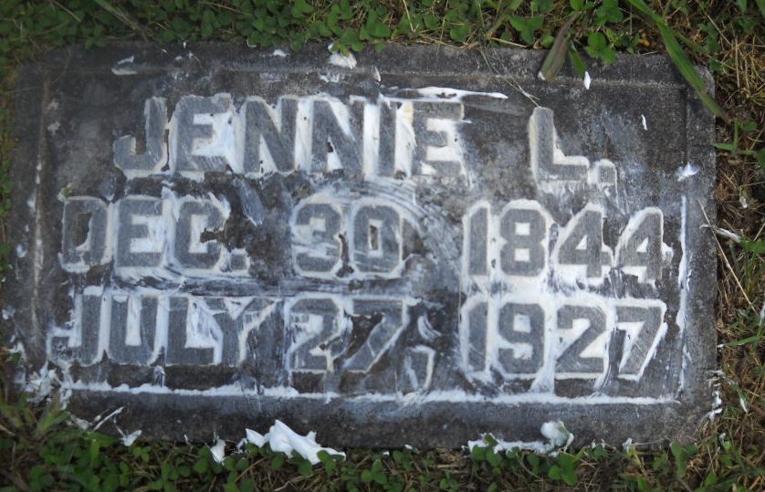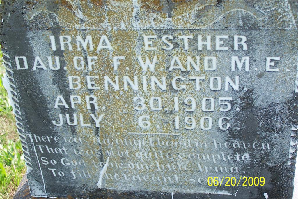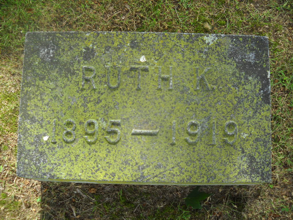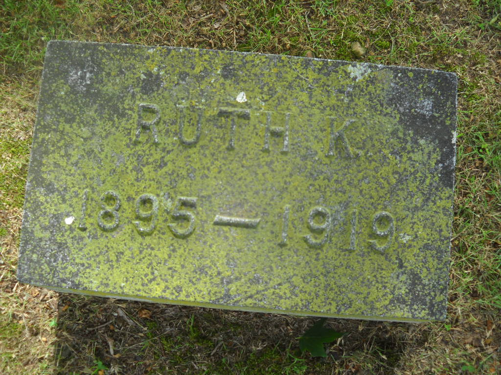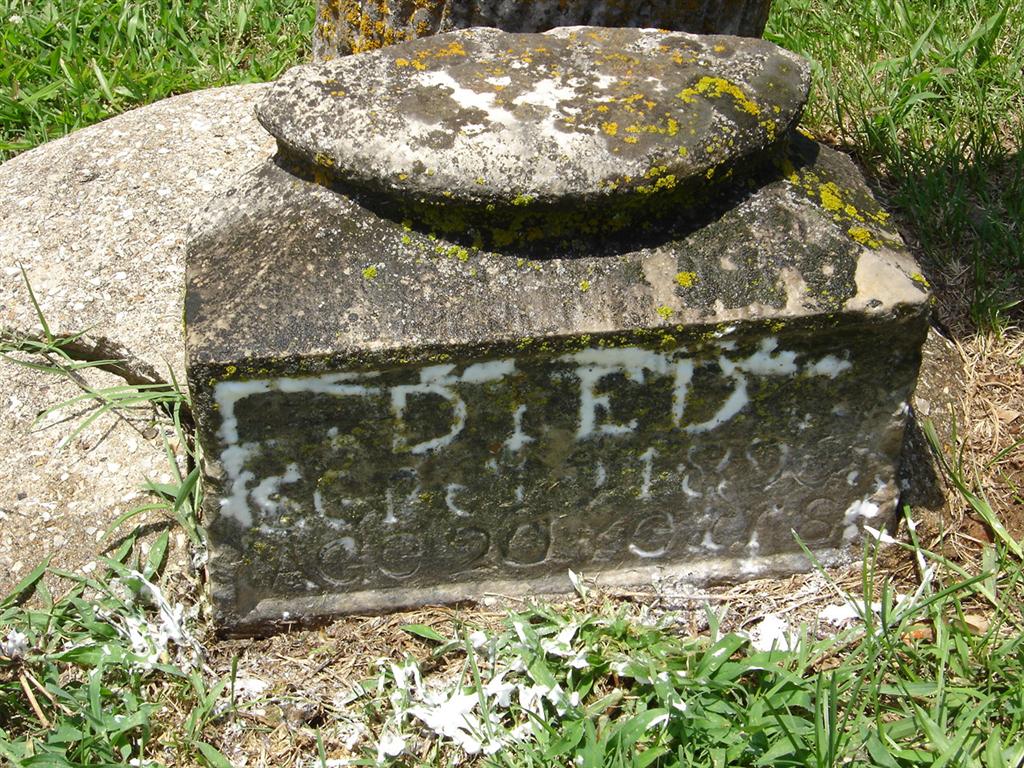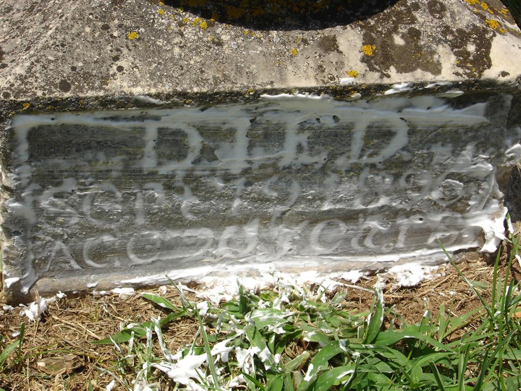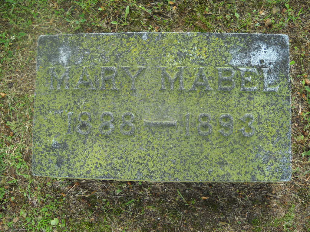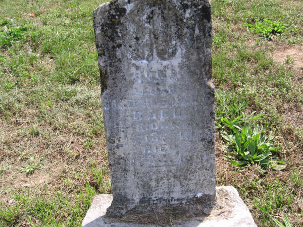 | BABB, Ola L. | July 24, 1884 | July? 21?, 1889 | Research Note: This stone is broken off from the base and flat on the ground. It is almost past being readable. The name on this stone was read as Lola in 1982 - however, it doesn't appear to read Lola. | Photo BCG and HS |