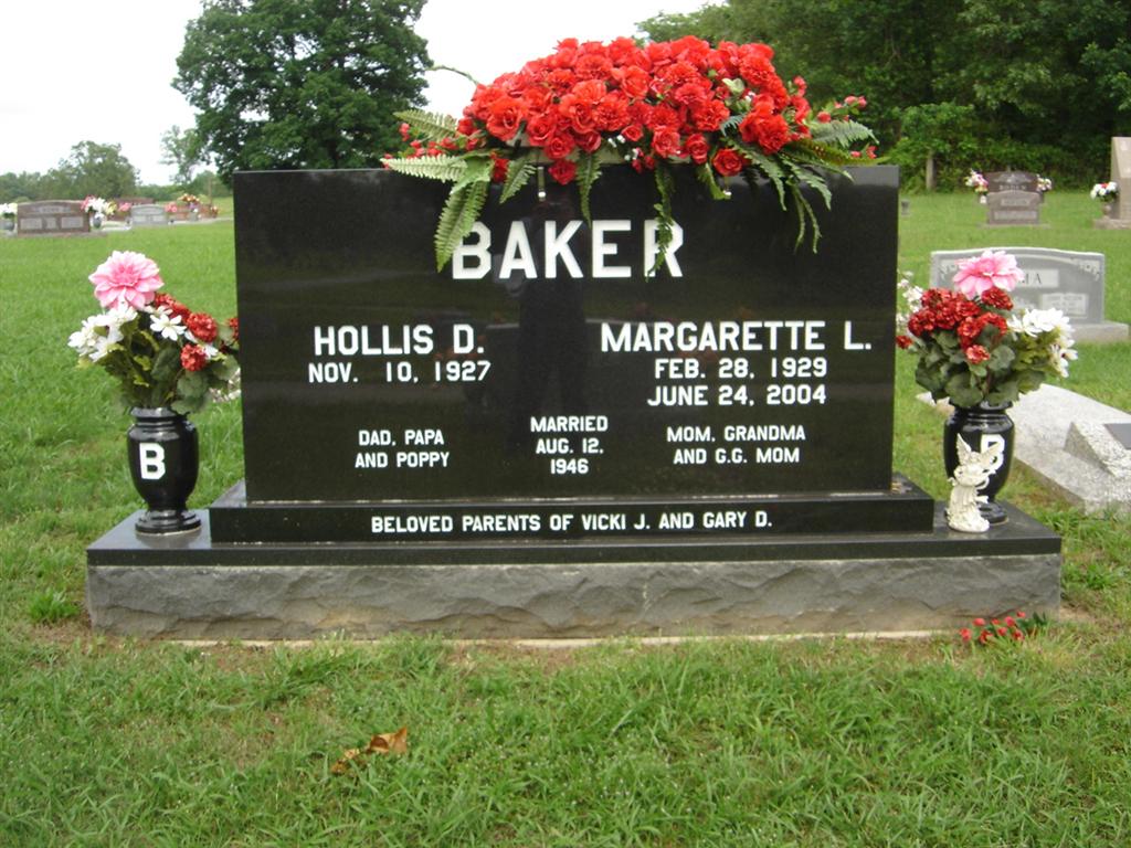 SSW: Hollis D. - Inscription: "Married Aug. 12, 1946" - Research Note: Margarette L. Baker, age 75, of Cassville, died June 24. She was born February 28, 1929, in Cassville, the daughter of Myrtle M. Cooper and George E. Smith. She was retired owner and sales director of a medical manufacturing company, and a retired Boeing employee. She was married to Hollis Baker. She was preceded in death by three brothers, Edgar Smith, Lawrence Smith, and George Smith; and three sisters, Florence Turner, Thelma Reis, and Noveta Israel. - Another Photo - Another Photo - Photo of Margarette and friend, Margaret on the right. | Monett Times June 28, 2004 SS Claims Index Phyllis Long Photo BCG and HS Photo Donna Cooper Photo Diana Cope |