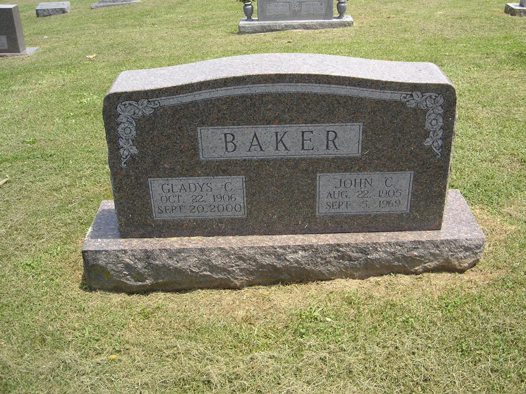 | BAKER, John Calvin | Aug. 22, 1905 | Sept. 5, 1969 | SSW: Gladys C. - Research Note: Son of Otis Leroy Baker and Dora Mae Landers. | Census Phyllis Long Photo BCG and HS |