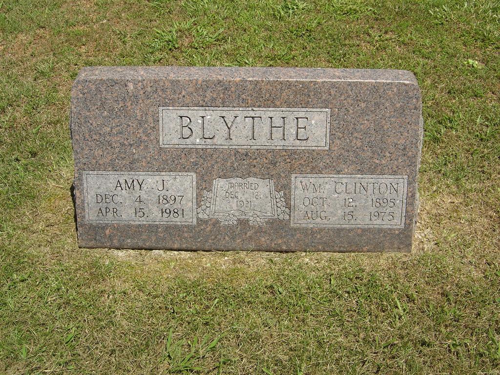 SSW: William Clinton - Inscription: "Married Dec. 12, 1921" - Research Note: Mrs. Amy Blythe, 83, of Cassville, Missouri, died at 12:15 p.m. on Wednesday April 15, 1981, at St. John's Hospital, Springfield, MO, after a long illness. Born December 4, 1897, near Jenkins, MO, to George Alexander and Rebecca Jane (Doty) Hudson. On December 12, 1921, she was united in married to William Clinton Blythe, who died August 15, 1975. Amy had resided the past 60 years in Cassville, MO. She was a member of the First Baptist Church. Surviving are two sons, Lavern Blythe and Larry Blythe, both of Cassville; four grandchildren and five great-grandchildren. Services were held at 2:30 p.m. Friday April 17, 1981 at the Williamson Chapel, Cassville, MO. | Williamson Funeral Home Phyllis Long Photo BCG and HS |