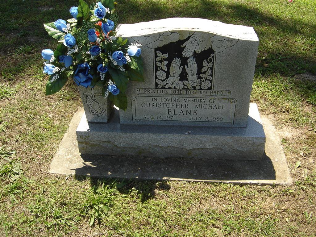Inscription: "In Loving Memory" - Research Note: Son of Michael Edward Blank and Sandra Marie Sizemore. | TX Birth Index Phyllis Long Photo BCG and HS |