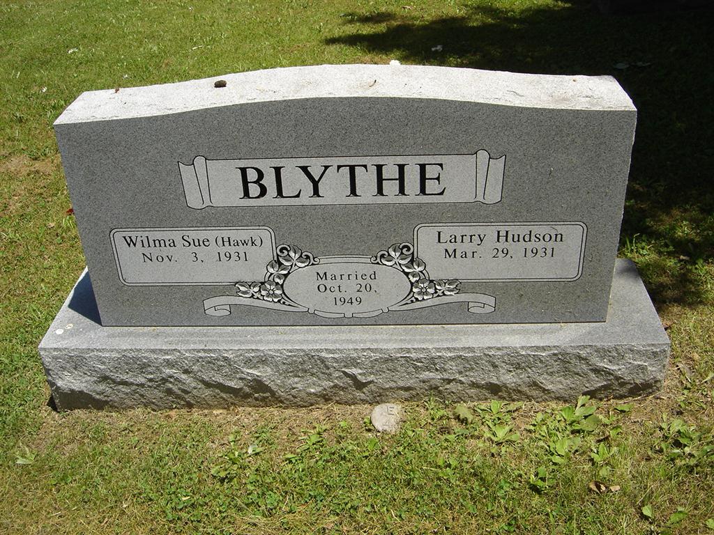 SSW: Larry Hudson - Inscription: "Married Oct. 20, 1949" - Research Note: She was the daughter of Jacob Herman and Wilma (Henderson) Hawk. On October 20, 1949, she was united in marriage to Larry Hudson Blythe in Cassville, with the bride's grandfather, Reverend Calvin Henderson officiating; and to this union two children were born. She attended Elementary and Middle school in Cassville, Boonville, Missouri, Huntsville, Arkansas, and Springdale, Arkansas. She attended high school in Cassville, where she graduated in 1949 as Class Valedictorian. Mrs. Blythe was employed in her earlier years as secretary at Barry County Extension office, Barry County Library and Bookmobile, secretary to the Superintendent at Cassville School district, and Civil Service Secretary at Past Survey Department in Fort Leonard Wood, Missouri. Mrs. Blythe along with her husband built Cassville Bowl in 1961 where she served as co-owner, league coordinator, and junior/adult league coach. She volunteered at Cassville Chamber of Commerce, Barry County Museum, and the First Baptist Church. She was a member of First Christian Church since 1948 where she baptized. Mrs. Blythe was active in church activities, taught Sunday school class and served as church office secretary. In addition to her parents and husband she was preceded in death by her daughter, Sally and one brother, Joe. - Another Photo | White Funeral Home Phyllis Long Photo BCG and HS Photo Diana Cope |