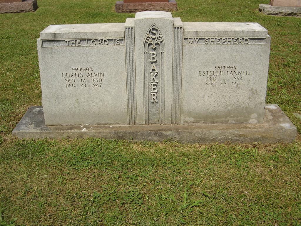 SSW: Curtis Alvin - Research Note: Daughter of Morgan Pannell and Martha Elizabeth McKinney. Curtis A. Baker, age 20, married Estella Pannell, age 17, on Aug. 9, 1911 in Barry Co., MO. Joe C. Baker, father of Curtis, and Morgan Pannell, father of Estella, gave consent. She owned a rooming house. Cassville, Barry Co., MO resident. Roland Meador of Cassville, MO was the informant on the death certificate. - Back of Stone | MO Marriage Records Census Death Certificate Phyllis Long Photos BCG and HS |