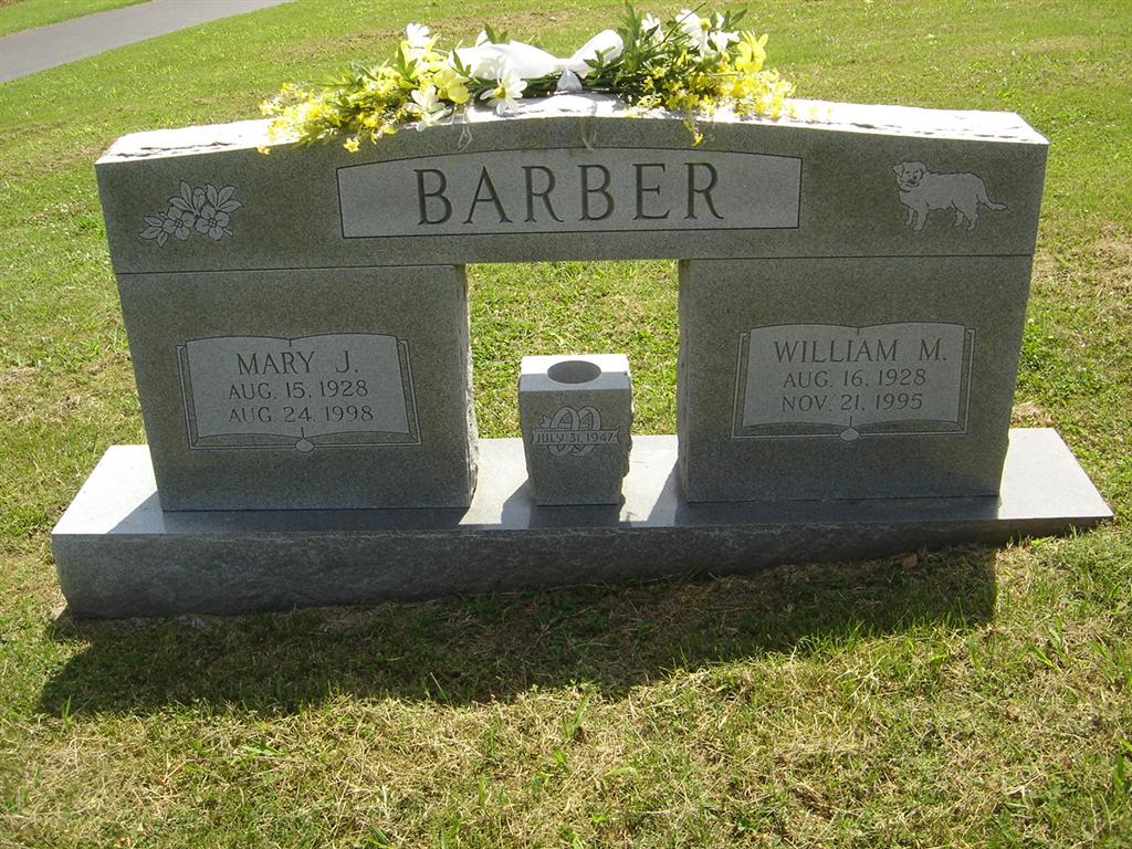SSW: William M. - Inscription: "July 31, 1947" - Research Note: The obituary for Mary Jean Barber, who was age 70, and of Cassville, MO, stated that she died at 9:15 a.m. Monday, August 24, 1998, at her home after a short illness. Mrs. Barber was born Aug. 15, 1928, at Barry County, and was a lifetime resident. She graduated from Monett High School in 1947. She worked for the Barry County Advertiser for 17 years, retiring as advertising manager. She was a member of Cassville First Baptist Church. She married William M. "Bill" Barber on July 31, 1947, at Monett. He died Nov. 21, 1995. Donna's Note: She was a daughter of Charles Sanders and Hattie Bell (Wormington) Haddock and was a grandson of Charles and Susan (Moyers - Meyers) Haddock, Jr. | Photo BCG and HS Obit Note Donna Cooper |