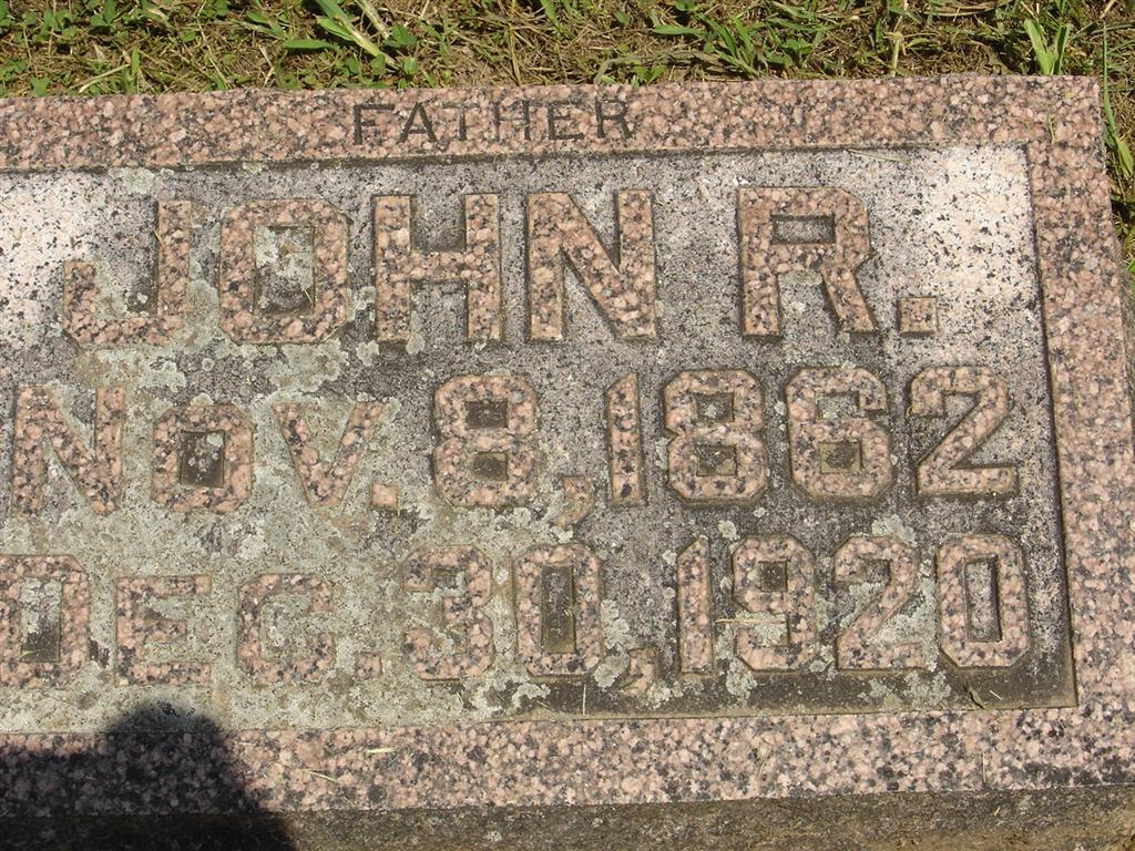 Inscription: "Father" - Research Note: Son of Lorenzo Jackson Blankenship and Martha Ann Garrison. His wife was Melcenia Elizabeth "Mellie" Stansbury. - Cassville Republican, Jan. 7, 1921 - John R. Blankenship died at his home in this city, Dec. 30, 1920, following an illness of several years, at the age of 58 years, 1 month and 22 days. Funeral services were held Friday afternoon at the Christian church, conducted by the pastor Eld. C. F. Rose , of Springfield. John R. was born at Corsicana, November 8, 1862, and was a son of the late Lorenzo J. and Martha Blankenship, who came to this county in 1851 and located at Cassville where Mr. Blankenship built a carding mill and operated it for four years. In 1855 he moved to Corsicana and there went into the carding mill and flour mill business. John R. assisted his father in this business for many years and later operated a mill at Corsicana himself. Later he sold his mill and bought a farm east of Corsicana which he improved and put into a high state of cultivation and which was his home until his health failed. He then sold his farm and moved to Eldorado Springs where he hoped to regain his health but no permanent improvement was obtained from treatment there. Last spring he bought property in Cassville and moved here where he would be near his children. He had consulted specialists at St. Louis and Kansas City and his local physicians had done everything in their power for his relief. His family gave him every attention and had for months devoted much of there time to his comfort. He married in 1885 to Miss Mellie E. Stansbury of Newton county. To them six children were born, five of whom are living: Dr. E. L. Blankenship of this city; Herbert R. of Purdy; Ruis of Monett and Misses Velma And Vera who are still at home. Mr. Blankenship had been a member of the Christian church for a number of years and was a good citizen. In addition to his widow and children, he leaves two brothers, U. G. of Butler and J. E.; and one sister, Mrs. P. E. Horine of this city. - Blankenship Plot Stone | Obit Phyllis Long Photos BCG and HS |