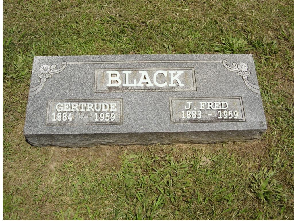 SSW: James Fred - Research Note: Culver's Funeral Home records have listed that her husband was James Fred Black. Isaac Taylor Hilton was her father's name and her mother was Martha Susan Williams. Clinton Black was her closest relative and he was the informant on the death certificate. Rev. Raymond Black preached her funeral and she was 74 years old. - Jan. 3, 1903, Saturday, Cassville Democrat - Fred Black and Miss Gertie Hilton had a runaway near C. W. William's residence, 2 miles out on the Springfield road, one night last week. No serious damage. - May 18, 1916, Thursday, Cassville Republican - Personal and Local News: Mrs. John Bubler of Enid, Okla., is visiting her sister, Mrs. J. F. Black. - May 25, 1916, Thursday, Cassville Republican - Personal and Local News: Mrs. Flora Buhler, who has been visiting her sister, Mrs. J. F. Black went to Crane Tuesday for a visit with relatives. | Photo BCG and HS Culver's Funeral Home, V. 8, P. 93, by Ted Roller Donna Cooper Death Certificate Online Newspapers Phyllis Long |