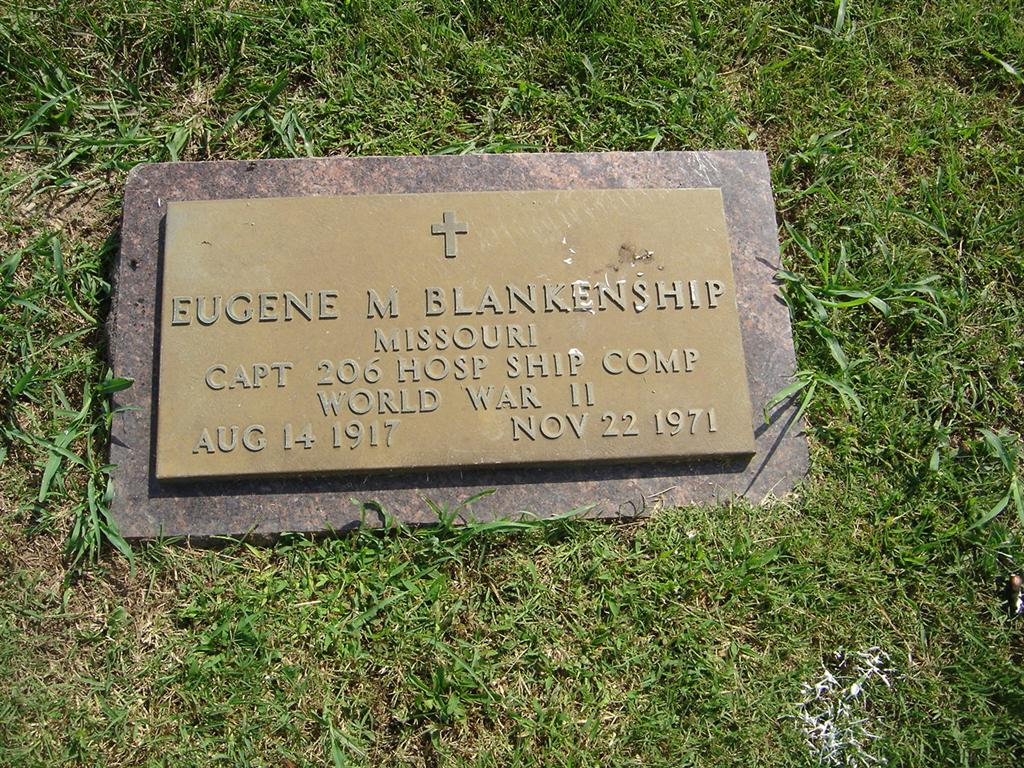 Inscription: MISSOURI CAPT 206 HOSP SHIP COM - WORLD WAR II" - Research Note: Son of Edgar Lloyd Blankenship and Sarah Frances Bayless. His wife was Gertrude Louise Elsner and she was the informant on the death certificate. - Blankenship Plot Stone | Census Death Certificate Phyllis Long Photos BCG and HS |