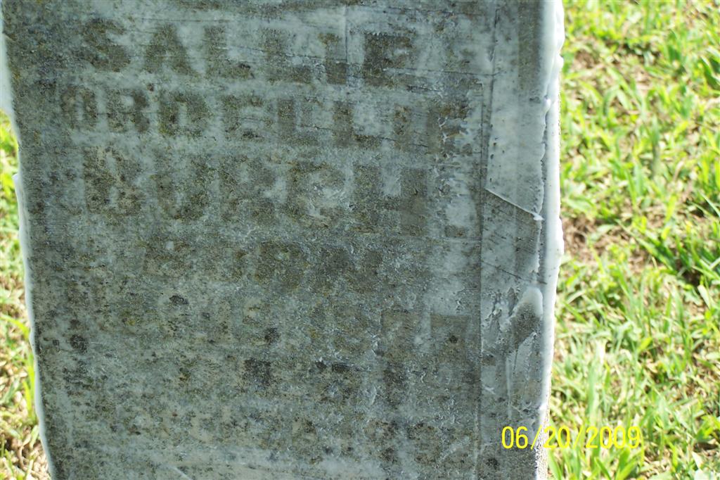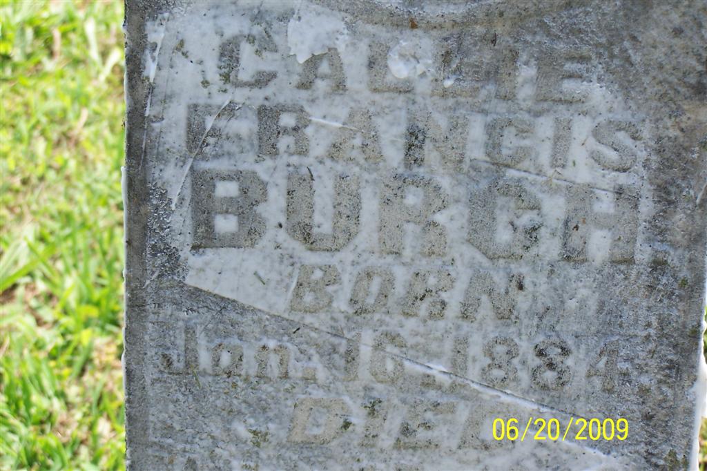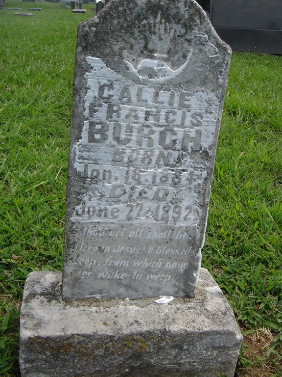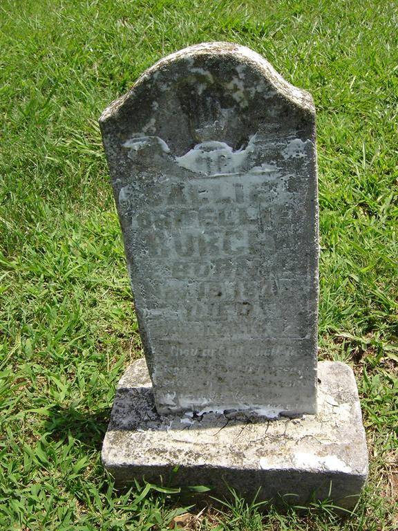 | BURCH, Sallie Cordellie | Nov. 15, 1877 | Mar. 20, 1892 | Research Note: Stone matches the ones for Callie and Prissillie Burch. Most likely another daughter of Willard and Martha Burch. - Another Photo - Another Photo | Note Phyllis Long Photos BCG and HS |