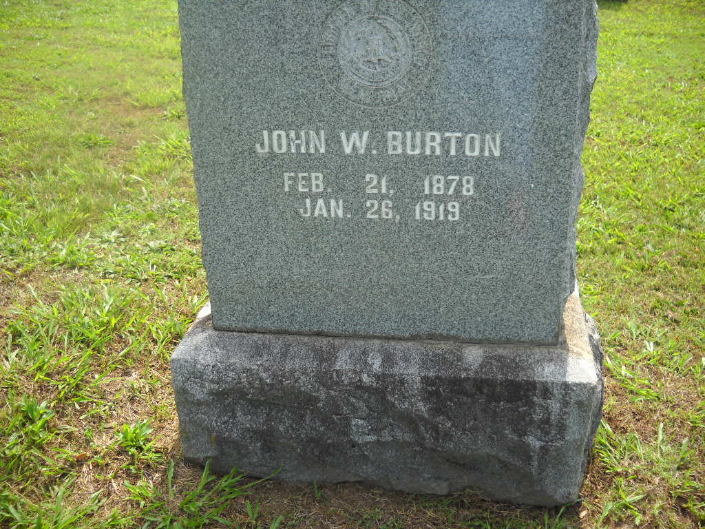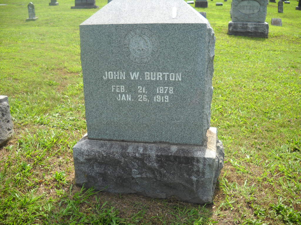 Research Note: John W. Burton, age 22, married Anna Brattin, age 19, on Mar. 11, 1903 in Barry Co., MO. - Cassville Republican, Thursday, January 30, 1919 - John Burton died Sunday morning, January 26, at the home of his mother in this city, following a long illness of tuberculosis, at the age of 40 years, 11 months and 1 day. He had been confined to his bed for the past eight months and for two years previous had been unable to work on account of weakened condition resulting from the disease. About one year ago he took treatment at the Mt. Vernon Sanitarium and for a while seemed to be much benefited. John Burton was born in Cassville February 25, 1878 and had lived here about all of his life. He was a son of the late William T. and Mrs. Mary (Townsend) Burton, a prominent family in the early history of Cassville. His aged mother is still living and with a mother's loving care nursed her son through his sickness. About fourteen years ago he was married to a Miss Brattin of Exeter and to them two sons, Billie and Carl, were born. In addition to the two sons and his mother he is survived by one sister, Mrs. Stella Tiddings who lives in Oklahoma and one brother Cliff Burton, of near Cassville. Funeral services were held Monday afternoon at the home, conducted by Rev. Ed Chappell of the Baptist church of which John was a member. Following the service the minister the Cassville Camp of the W. O. W. gave its beautiful funeral services at the grave, the body having been escorted to Oak Hill Cemetery by the Woodmen. He carried a policy in the W. O. W. for $1,000 for the benefit of his mother. - December 22, 1917, Saturday, Cassville Democrat - John Burton is at home from Mt. Vernon Sanitarium and is much improved. He will remain here and continue the treatment. - Another Photo | Online Newspapers MO Marriage Records Phyllis Long Photos BCG and HS |