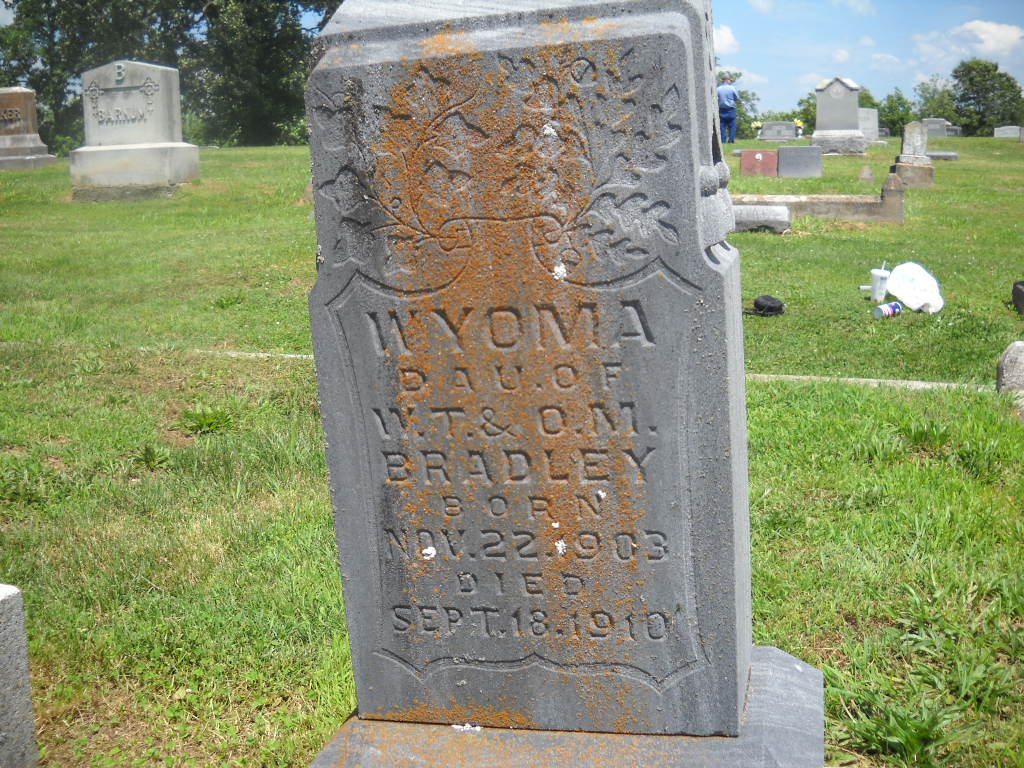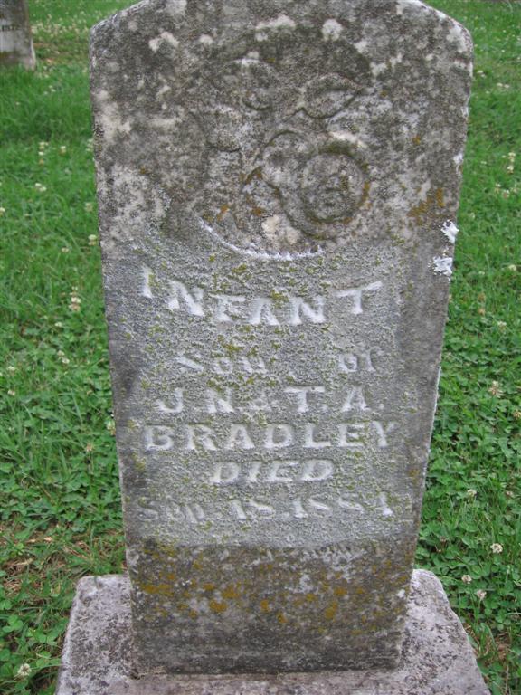 | BRADLEY, Infant | No Data | Sept. 18, 1884 | Inscription: "Infant Son of J. N. and T. A." | Photo BCG and HS |