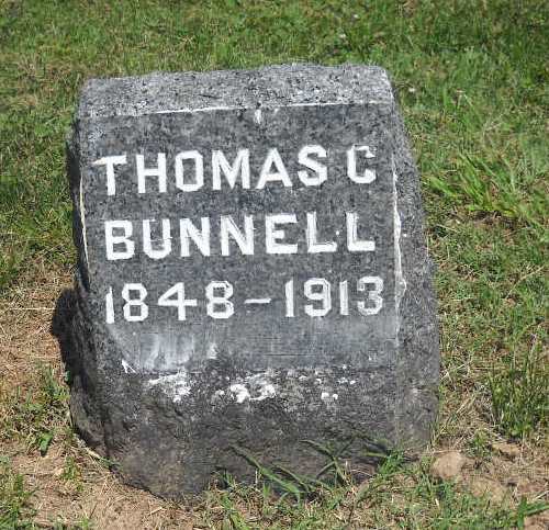 Research Note: Tobias' Note: Union Civil War Veteran and Monument Maker. Served in the Civil War for the North with the 87th Ohio Volunteer Infantry as a Drummer. Phyllis' Note - The death date posted by Tobias was Feb. 11, 1913, the death certificate and newspaper item have that he died Nov. 11, 1913. The date on the paper is Nov. 13, 1913. It reads that he was a son of Noah Thomas Bunnelle and Sarah M. Heaton. November 13, 1913, Thursday, Cassville Republican - Thomas C. Bunnelle died Tuesday afternoon at his home in this city after several week's illness of brain trouble. The deceased lived his early life in Ohio. He was a veteran of the civil war, giving his service to the cause of eh Union. He had been a citizen of Cassville for only a few years during which time he was employed by Adams and Co., in monumental work. A wife and son, Raymond and three brothers at Urbana, Ohio, survive. Funeral services, conducted by Revs. Love and Hickman, were held at the home Wednesday afternoon and interment made at the Oak Hill Cemetery. - Donna's Note: His stone reads that he was born in 1848 and that his name was spelled Bunnell. | Obituary Tobias Bunnell Online Newspapers Death Certificate Phyllis Long Photo BCG and HS |