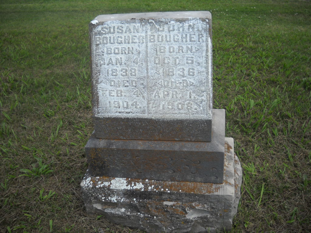 | BOUGHER, Susan | Jan. 4, 1838 | Feb. 4, 1904 | SSW: John - Research Note: This stone is barely readable. | Photo BCG and HS |