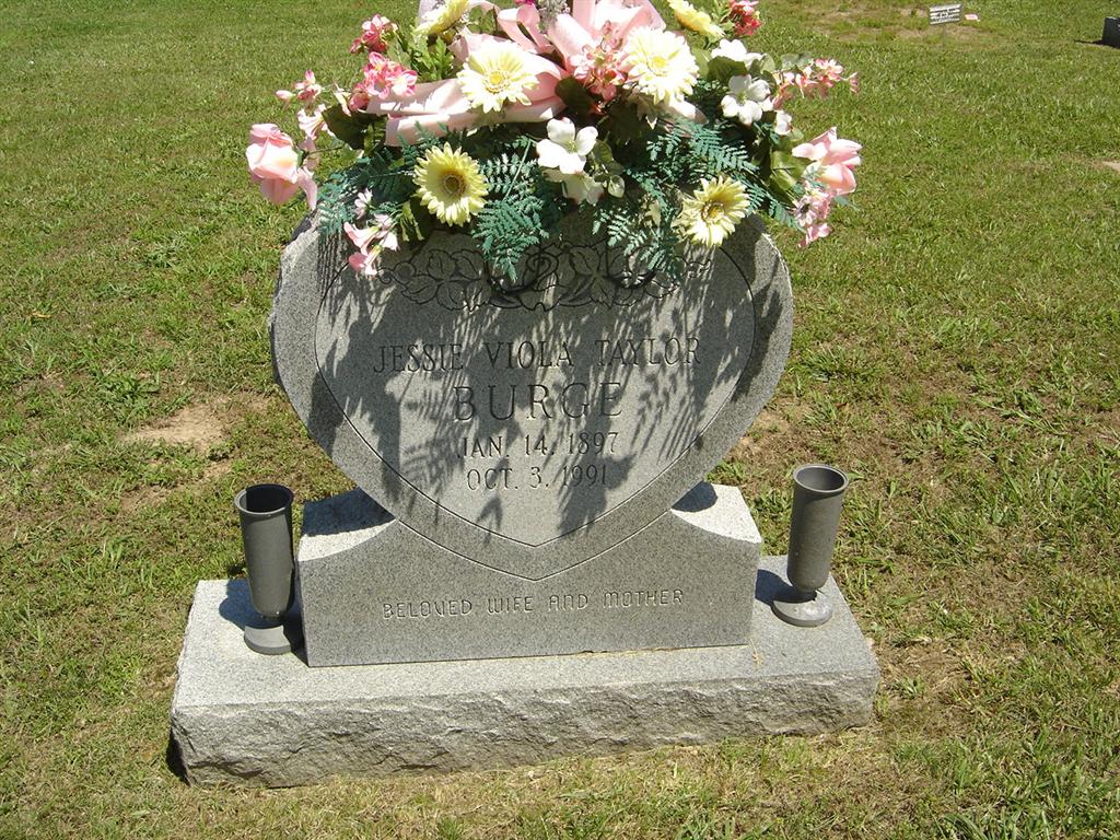 | BURGE, Jessie Viola (TAYLOR) | Jan. 14, 1897 | Oct. 3, 1991 | Inscription: "Beloved Wife And Mother" - Research Note: Jessie V. Taylor married Carl M. Burge on Jan. 12, 1914 in Hamilton Co., IN. Daughter T. D. Taylor and Martha Smith. | IN Marriage Index Phyllis Long Photo BCG and HS |