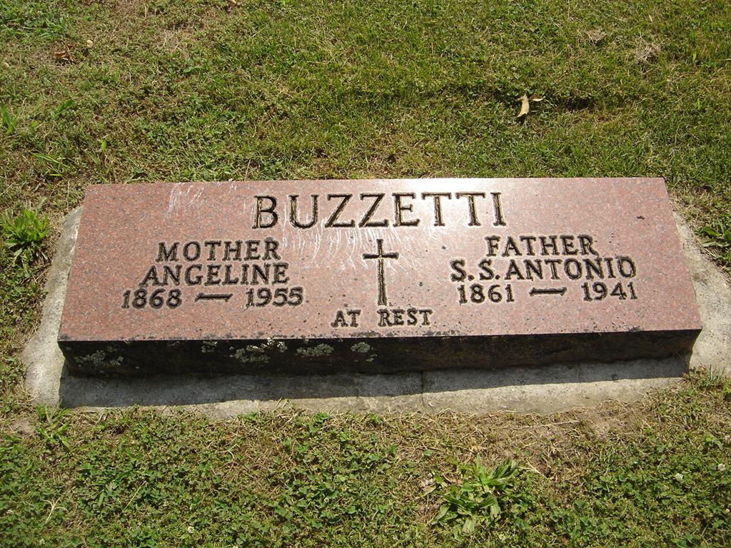 SSW: S. S. Antonio - Research Note: Her death certificate reads that S.S. A. Buzzetti was her husband. The cause of death was carcinoma of the liver. Her father was Joe Morelli and her mother Angeline. - According to census, she was the daughter of Joseph Morelli born Switzerland and Louisa Luppie born England. | Photo BCG and HS Death Certificate Donna Cooper Census Phyllis Long |
