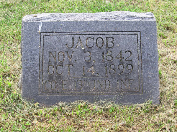 Inscription: "CO. 3 13 IND. INF." - Research Note: Cassville Republican, Oct. 19, 1899 - Died, Saturday, Oct. 14, at 8:05, A. M. of typhoid fever. Jacob Bower of Lohmarsburg, aged fifty seven years and eleven months and eleven days. Jacob Bower was born near Knoxville, Tenn. His mother dying at the age of three months and his father three months later, he was raised by a brother. At this age of sixteen he went to Indiana and upon the breaking out of the war enlisted in Co. E. 19 Ind. Inf. and served three years and three months. In 1865 he married Louisa Talbert, who with their son, J. M. survives him. In 1870 they went to Northeastern Missouri but returned to Indiana. In 1878 they came to Cassville, but returned to Indiana eighteen months later. In 1881 they moved to Mineral Springs and have resided in this county since, in Cassville, Purdy, and Lohmarsburg, the scene of his death. By trade Mr. Bower was a carpenter but had not followed it in recent years. The remains were interred in the Cassville cemetery, Sunday, after a short service conducted by Rev. J. W. Ennes. - Bower Plot Stone | Online Obit Darla Ball Marbut Photo BCG and HS |