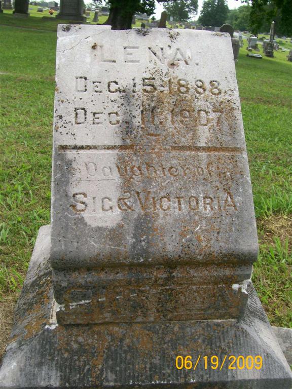 | BURTON, Lena | Dec. 15, 1888 | Dec. 11, 1907 | Inscription: "Daughter of Sig and Victoria" | Photo BCG and HS |