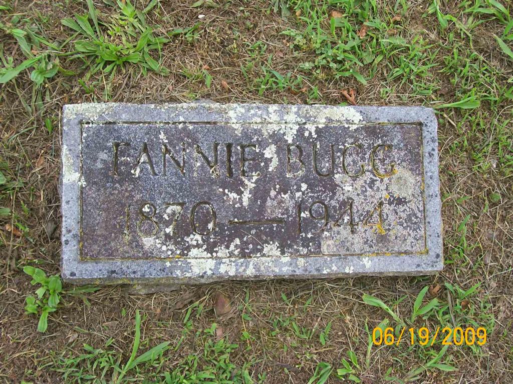 Research Note: Her husband was E. G. Bugg. She was a daughter of Rev. J. S. Henry born KY and Betty Searcy born KY. Mrs. W. D. Koon of Cassville, MO was the informant. November 21, 1893 in Crittenden, KY, she was married to E. Grant Bugg. - Cassville Republican, Aug. 24 , 1944 - Funeral services for Mrs. Fannie Bugg were held Thursday afternoon at the Koon Funeral Home, conducted by her pastor, Rev. C. G. Siler, of the Baptist church of which she had been a member since childhood. Rev. Siler was assisted by Rev. Chas. Vanzandt. Music was furnished by a quartet composed of Judge Floyd Inman, Chas. Willis, W. C. Blythe and with Mrs. Troy Wilson at the Piano. The flowers were very lovely. Rev. Siler paid Mrs. Bugg a fine tribute as a good Christian mother. At the service the following obituary was read: Fannie Henry Bugg, daughter of the late Rev. and Mrs. J. S. Henry was born in Madisonville, Ky., December 9, 1870. At the age of nine years she moved to Marion, Kentucky with her parents, where she grew to womanhood and November 21, 1893 she was married to E. Grant Bugg. The next day after their marriage they moved to Fredonia, Kentucky. To their union one child was born, Mrs. Virginia Koon, wife of Wm. D. Koon. In August 1914 Mr. and Mrs. Bugg moved to Cassville. Three years later Mr. and Mrs. Koon also moved to Cassville where they had all resided since. The husband preceded her in death in 1930. At the age of 13 years she professed faith in Christ, and united with the First Baptist church of Marion, Kentucky; where her parents were charter members. She was the first candidate for baptism in the First Baptist church at Marion, Ky., was baptized by the Rev. Hodge Grayston. After coming to Cassville she transferred her membership to the First Baptist church of Cassville, where she has ever since been a true, loyal member. Until health conditions hindered she was a regular attendant upon all church services and was very active in all the Women's meetings. She was also member of the Eastern Star, and took a very active interest in some of the clubs of Cassville. Only a few weeks ago the Garden Club dedicated a beautiful poem to her as an appreciation of her daughters interest in the club. She was an honorary member of the Silver Leaf club. She is survived by the daughter, Mrs. Virginia Koon; four grandchildren, Mrs. Christine Bradley of Tucson, Ariz., Mrs. Margaret Coleman of Eureka Springs, Ark,; Wm. Carter Koon and John Koon of Cassville and three great-grand children; One brother survives, A. M. Henry of Marion Ky.; with many friends and people who loved her. She departed this life at the age of 73 years and 6 days from the home of her daughter, Mrs. Koon, where she received the very best of care and medical attention during the three weeks of her serious illness. - Bugg Plot Stone | Death Certificate Online Obit Phyllis Long Photo BCG and HS |