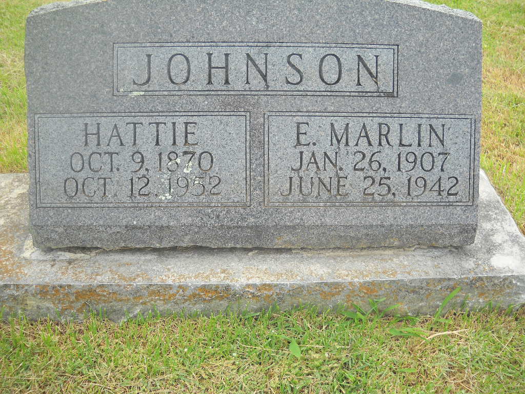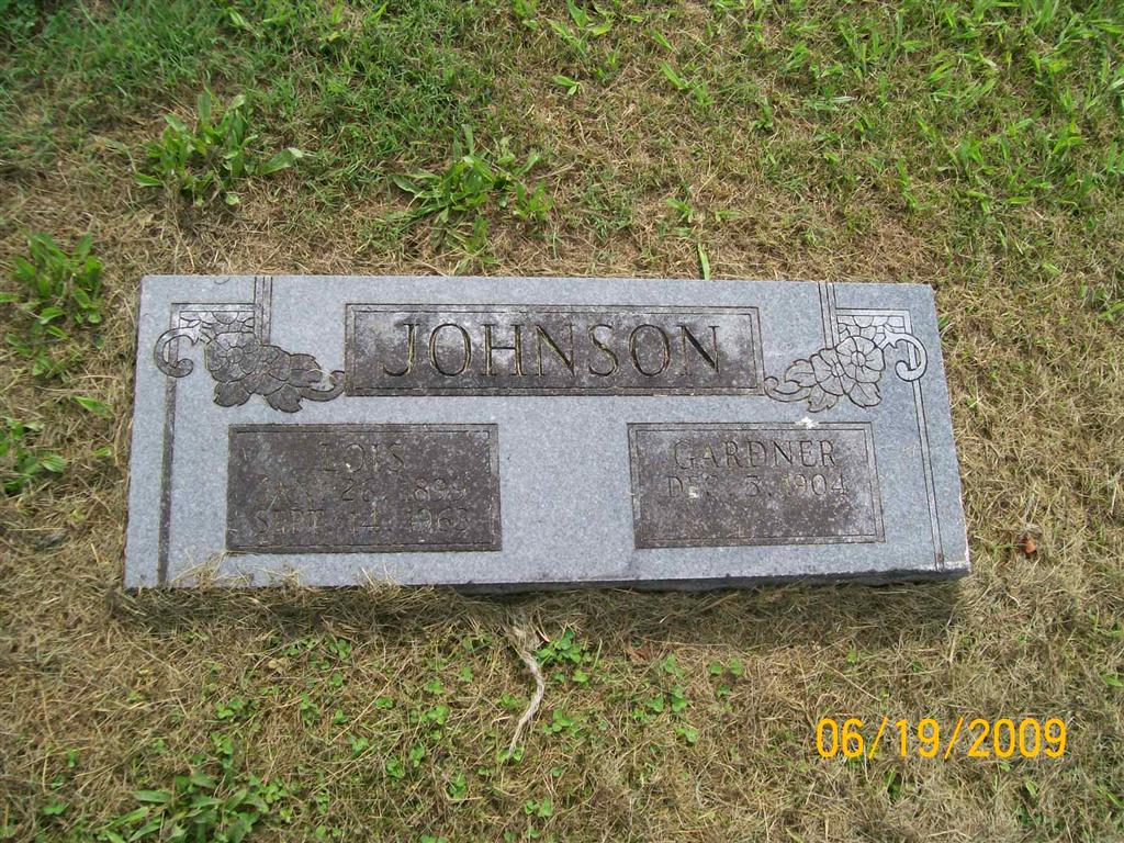 SSW: Gardner - Research Note: Culver's Funeral Home records read that her husband was Gardner Johnson. Her parents names were not given. - Daughter of Charles Marshall Hutchens and Hattie Gaskins, both buried at Oak Hill Cemetery. This stone is not very readable. Her husband's death date has never been added. | Culver Funeral Home, V. 10, P. 114, by Ted Roller Donna Cooper Census Phyllis Long Photo BCG and HS |