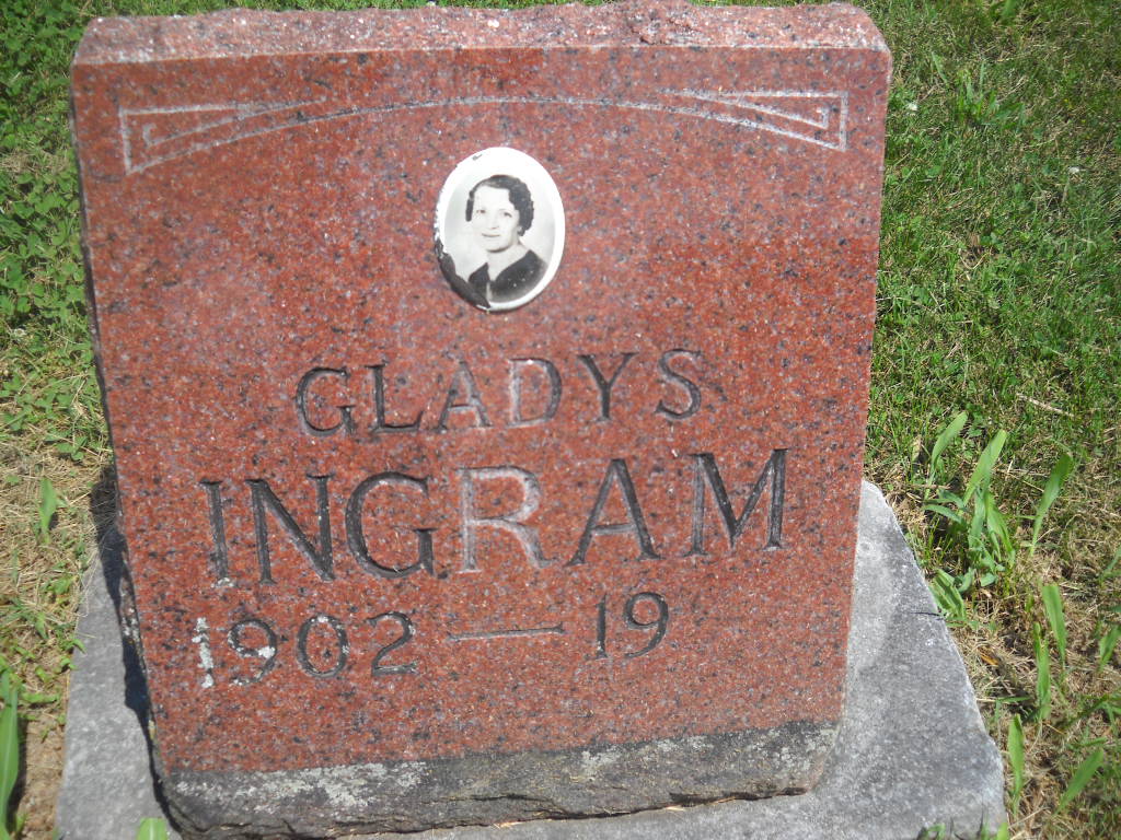 | INGRAM, Gladys Pauline (HORINE) | Aug. 29, 1902 | Feb. 20, 1989 | Research Note: Her birth date is given as Aug. 29, 1900 born MO, by researcher Norman Wayne Horine. She was the wife of John Sydney Ingram and a daughter of Preston Ellsworth Horine and Emma Laura Blankenship. Donna's Note: The stone has her photo on it. Her son's death certificate has her maiden name given on it. Kay posted that she was born in 1900, the stone reads 1902. | Headstone Kay Baker Cardin Note Phyllis Long Note Donna Cooper |