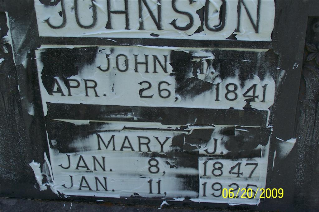SSW: John T. - Research Note: Richard posted that Mary was born in 1846, her stone reads 1847. Mary Jane married John Thomas Johnson on Dec. 4, 1865 in Sherman, Grayson Co., TX. Daughter of James Holt and Martha Stark . | Obit Richard Johnson Photo BCG and HS |