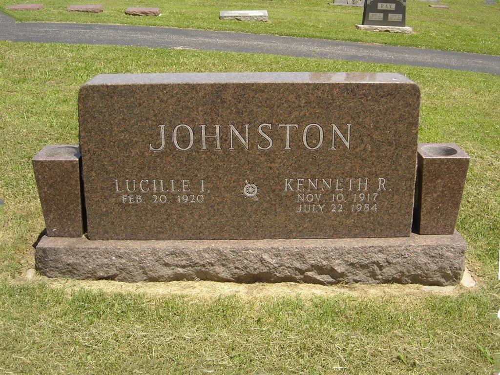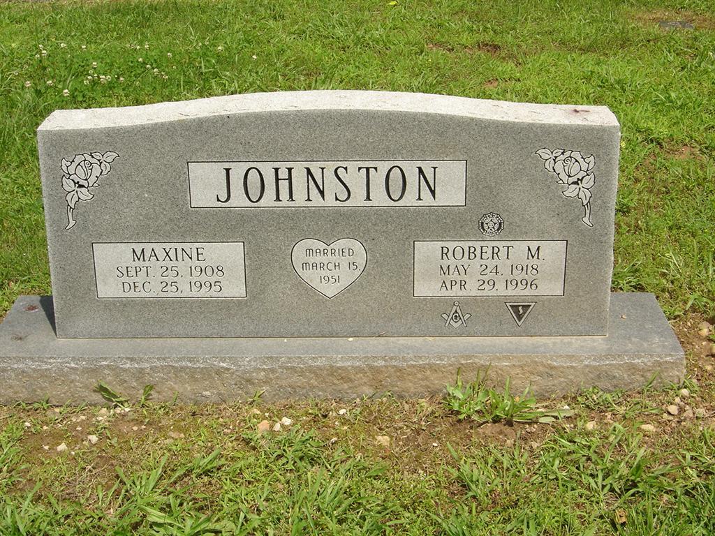 | JOHNSTON, Maxine | Sept. 25, 1908 | Dec. 25, 1995 | SSW: Robert M. - Inscription: "Married March 15, 1951" | Photo BCG and HS |