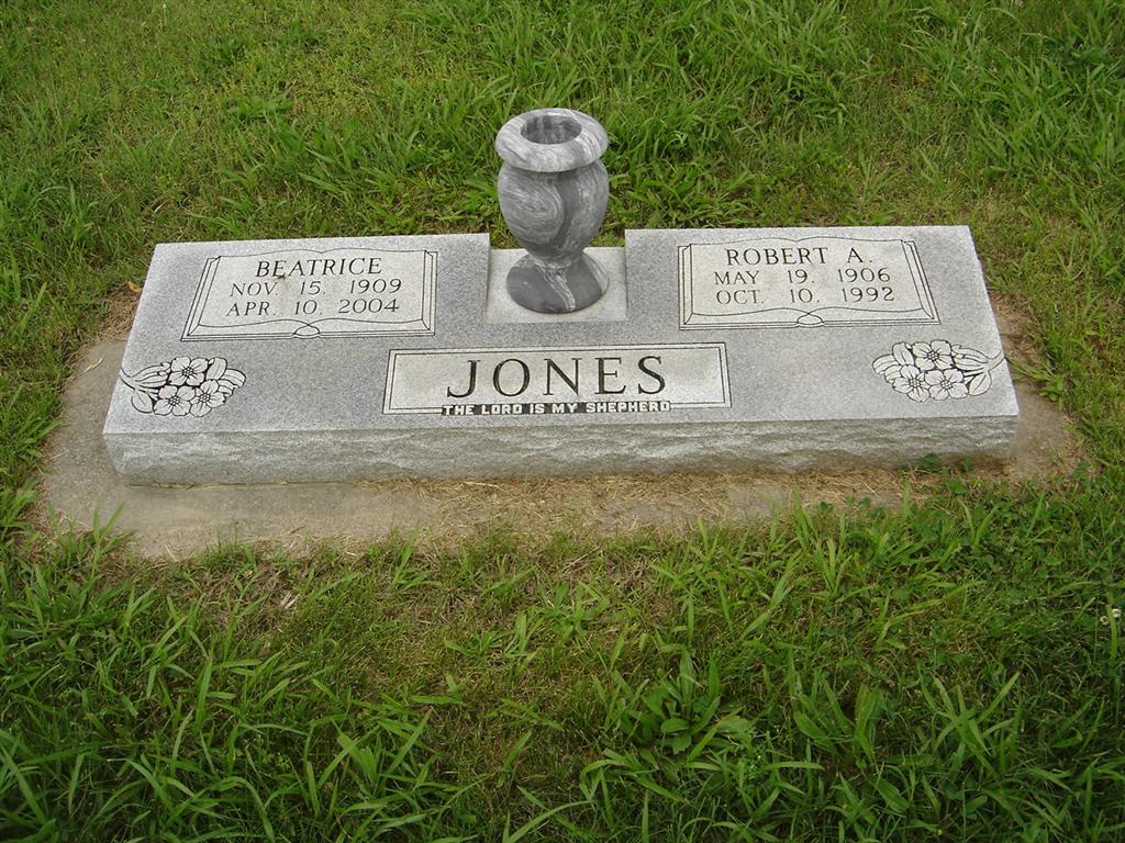 | JONES, Robert Algernon | May 19, 1906 | Oct. 10, 1992 | SSW: Beatrice - Research Note: Son of Robert William Jones and Alberta "Bertie" Josephine Morgan. Robert Algernon, age 20, married Beatrice Irons, age 17, on Apr. 16, 1927 in Jackson Co., MO. Etta C. Dunfee, guardian of Robert, gave consent. | MO Marriage Records Census Phyllis Long Photo BCG and HS |