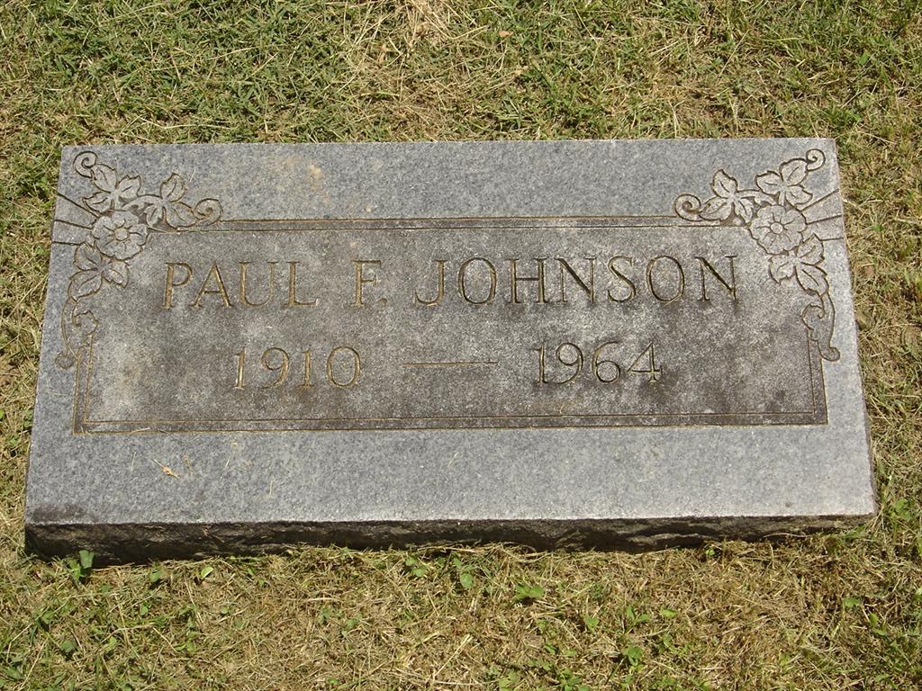 Research Note: According to Culver Funeral Home Records, he was a son of Benjamin F. Johnson and Flossie Gaskins. His wife was Leona Johnson. His closest relative was Flossie Morgan. Flossie is buried next to Paul. Paul Johnson, age 39, married Leona Robertson on Feb. 13, 1911 in Jackson Co., MO. Paul Johnson married Leona Robertson on May 6, 1950 in Jackson Co., MO. | Culver Funeral Home, V. 11, p. 63, by Ted Roller Donna Cooper MO Marriage Records Phyllis Long Photo BCG and HS |