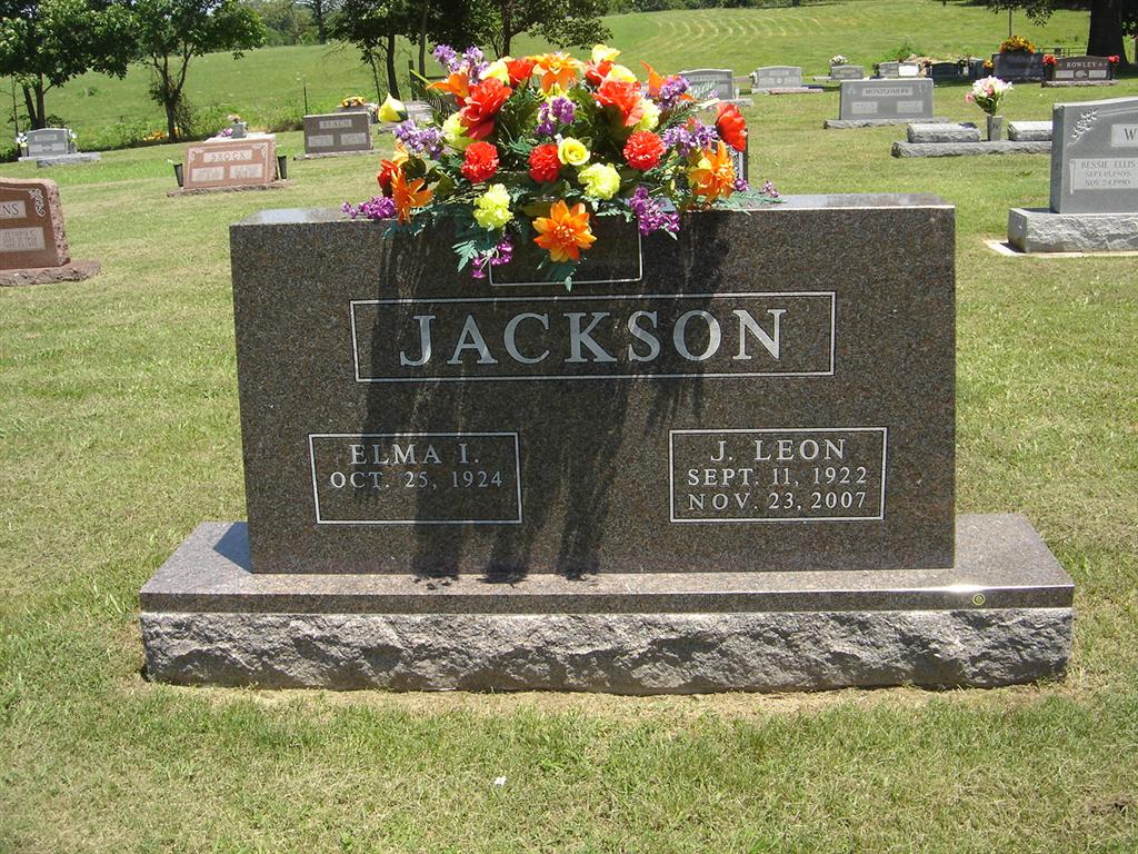 SSW: Elma I. - Research Note: He was a son of Charles and Delsie (Wolf) Jackson and he married Elma Cowherd on Nov. 1, 1951. He was preceded in death by his parents; two sisters, Alice Irene "Midge" Blythe and Neva Winston and a grandson, Charles Thomas Jackson, III. Leon, as most people knew him, received his education in Cassville, graduating in 1939 at the age of sixteen from Cassville High School. He then received his Engineering Degree from Finely Engineering College in Kansas City. During World War II he entered the United States Army, serving from June 12, 1944 until April 5, 1946. Most of his life was spent in Barry County. He was an Architectural and Civil Engineer and for twenty-eight years was County Engineer in McDonald, Barry and Lawrence Counties. He developed a very large part of Table Rock Lake as a Registered Surveyor. For nineteen years Leon was sexton for Oak Hill Cemetery, which was one of his passions. He was a member of Butterfield Methodist Church, Pythagoras Masonic Lodge 383 and American Legion Post 118. | Barry Co. Advertiser Phyllis Long Photo BCG and HS |