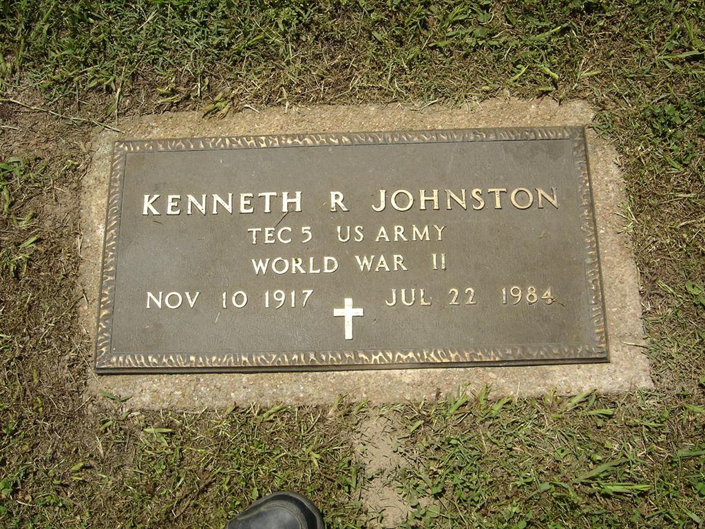 July 22, 1984 | SSW: Lucille I. - Research Note: Adopted son of Ernest H. Johnston and Letitia Digby. - Military Stone - Inscription: "KENNETH R. JOHNSTON - TEC 5 - US ARMY - WORLD WAR II" | Census Phyllis Long Photos BCG and HS |