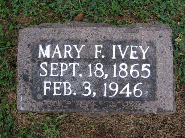 | IVEY, Mary Frances (JONES) | Sept. 18, 1865 Dade Co., MO |