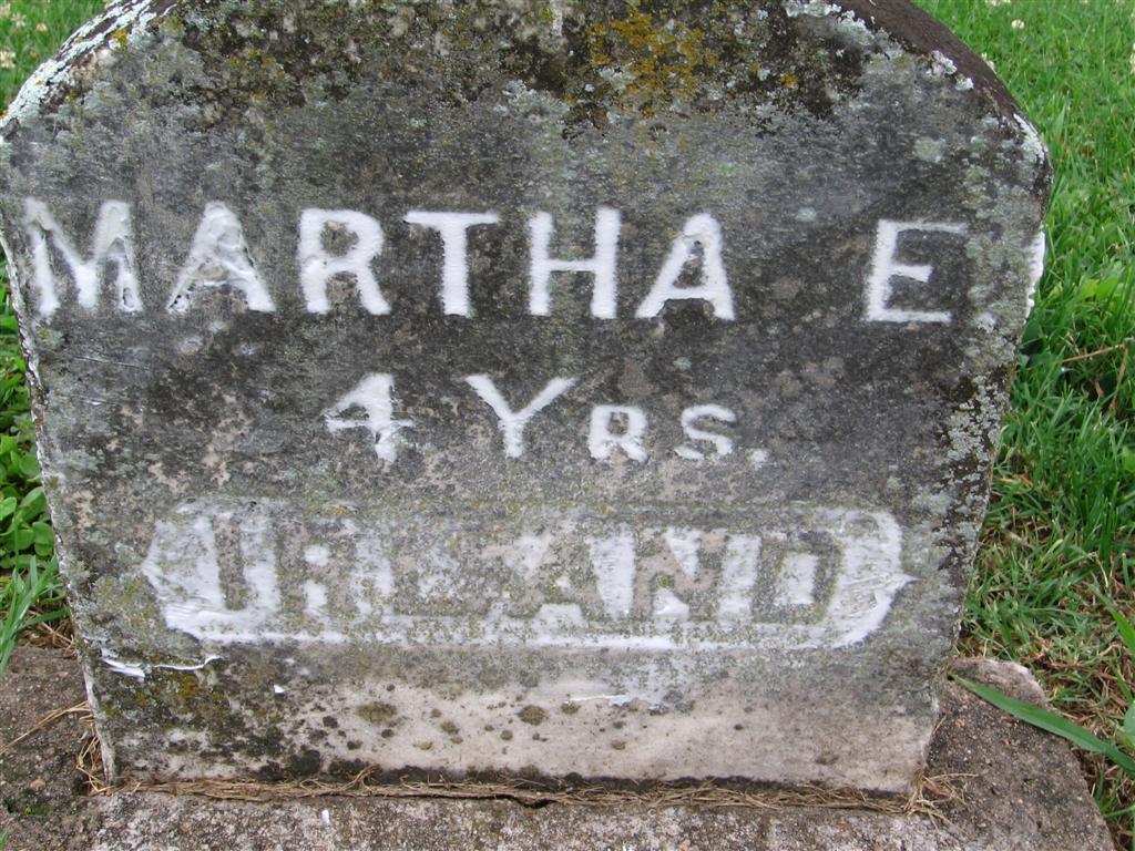 Inscription: "Martha E. Irland - 4 Years" - Research Note: She was a daughter of John Ireland and Mary Ellen Haddock.The stone has her name spelled Irland. | Online Photo Family History Darla Ball Marbut Photo BCG and HS |