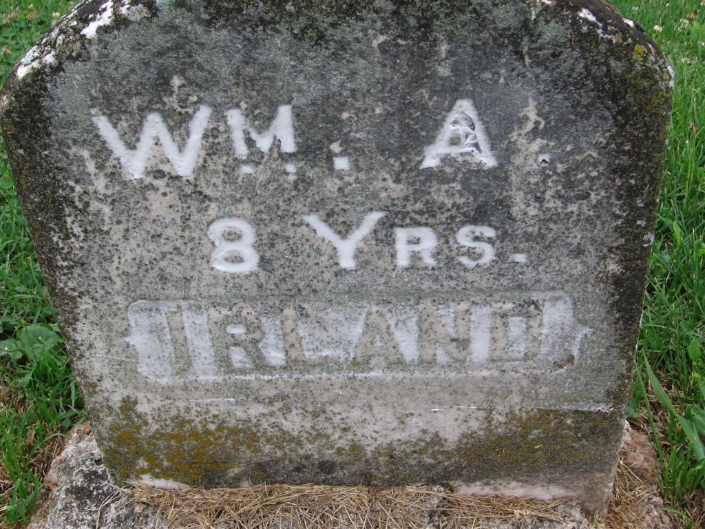 Inscription: "Wm. A. Irland - 8 Years" - Research Note: He was a son of John Ireland and Mary Ellen Haddock. The stone has his name spelled Irland. | Online Photo Family History Darla Ball Marbut |