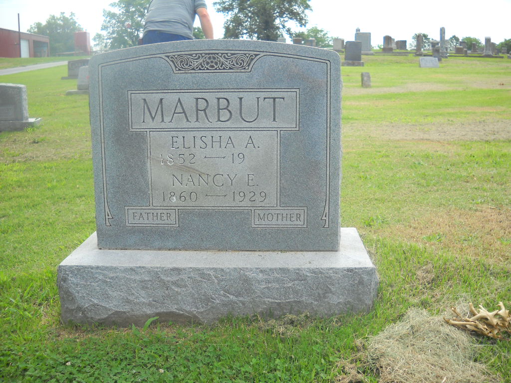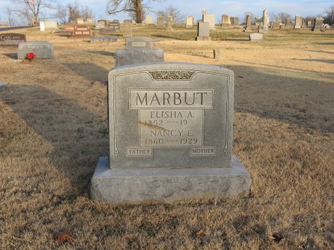 SSW: Elisha A. - Research Note: According to her death certificate her husband was E. A. Marbut. Her father was P. P. Henderson and her birth place was unknown to the informant. Her mother's name wasn't known to the informant. She was married, age 68 years, 11 months and 15 days old at the time of her death. Her cause of death was old age and heart disease. Fred Marbut, Springfield, MO, was the informant. Her mother was Manerva Ann Dodge. - Another Photo | Death Certificate Donna Cooper Photo Jack Fly Photos BCG and HS |
