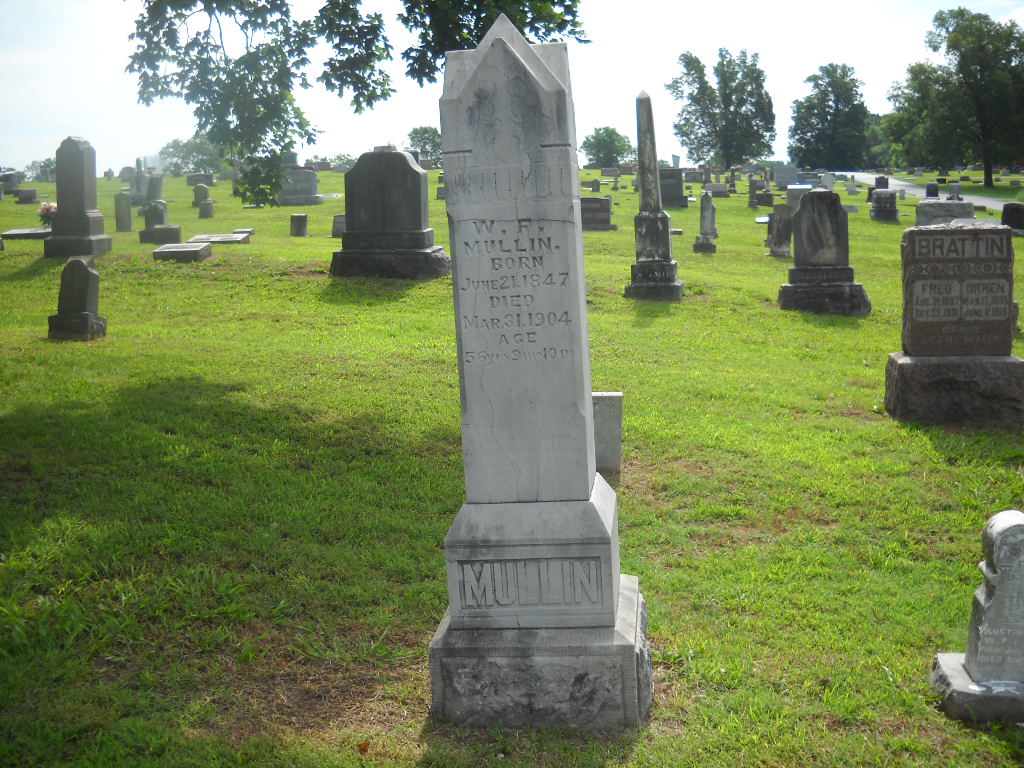Inscription: "Age 56 Yrs. 9 Ms. 10 Ds." - Research Note: Civil War Veteran. Son of Swift S. Mullin and Susan Caroline Taylor. The death certificate for Eva Bertha (Hailey) Hailey gives her parents as William Franklin Mullin and Zaida L. Baldwin. Eva is buried at Oak Hill Cemetery. Zaida is buried at Painter Cemetery, born 1842 and died Feb. 1883. - Possible second wife was Hannah (Nickel) (Hammond) (Parnell) Mullin, buried at Horner Cemetery, born 1847, died 1897. Mrs. Hannah Parnell, married William F. Mullin on Sept. 1883 in Barry Co., MO. Also another marriage record for William F. Mullin, married Susan Howard on July 23, 1899 in Barry Co., MO. - Another Photo - Another Photo | Cemetery Records Sue Thomas MO Marriage Records Phyllis Long Photos BCG and HS |
