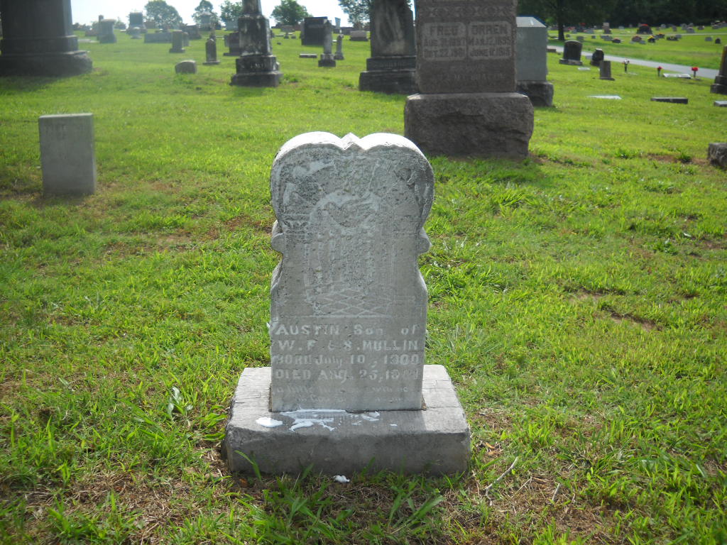| MULLIN, Austin | July 10, 1900 | Aug. 26, 1901 | Inscription: "Son of W. F. and S." | Photo BCG and HS |